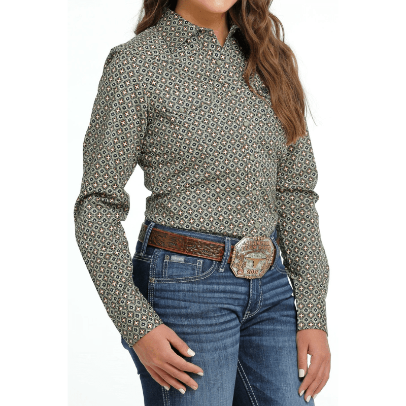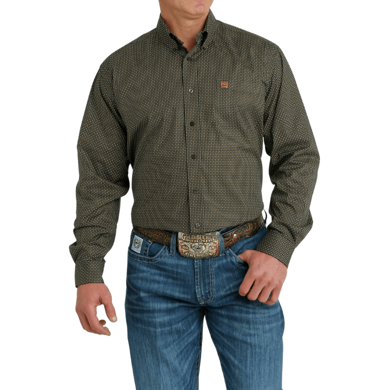 Cinch Men's Olive Green Print Long Sleeve Western Shirt MTW1105981 Cinch Men's Olive Green Print Long Sleeve Western Shirt MTW1105981