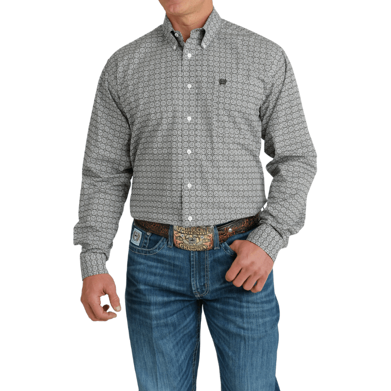 Cinch Men's Geometric Print Gray Button Down Western Shirt MTW1105894 Cinch Men's Geometric Print Gray Button Down Western Shirt MTW1105894