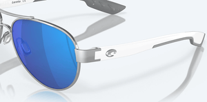 Costa Del Mar Loreto Palladium White Temples Frame/Blue Mirror Glass Lens Sunglasses