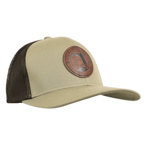 These mesh trucker hats are comfortable with adjustable snapbacks and curved brims. Contrasting stitching and custom tan leather boot patch logo on the front and our signature "1521" embroidered on the side. Custom details are all over this hat, inside and out!