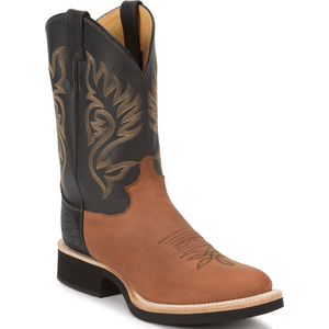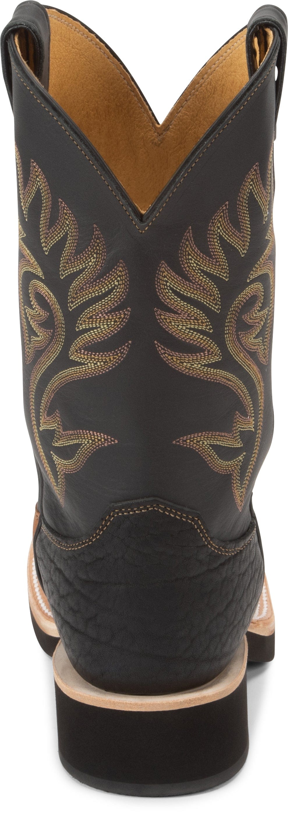 The midnight black leather upper features a gold stitching along the upper and black leather panel on the heel. The golden-brown foot has a round toe and double stitch welt that allow for maximum durability and the J-Flex Flexible Comfort System® insole cushions and supports the foot guaranteeing lasting comfort. The rubber outsole resists oil & abrasions and provides a relaxed fit in and out of the saddle. This style is proudly Made in the USA with global parts.