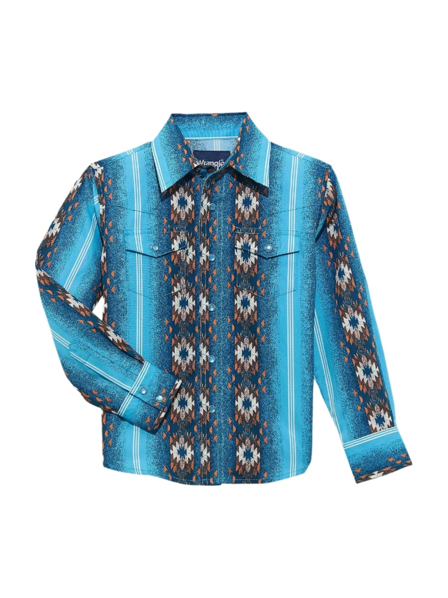 Wrangler Boy's Sea Salt Blue Checotah Long Sleeve Western Snap Shirt 112365829