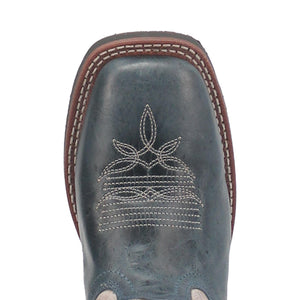 The Laredo Dolly boot is made with muted blue and off-white leather. The upper has matching blue underlays accented by multi-row stitch design. For more detail, the blue collar and pull-strap add the perfect finish. You will feel the comfort from step one with the removable Ortholite cushion insert, broad square toe and stockman heel. Great for the farm or a night out. The color combination makes the Dolly a stunner!