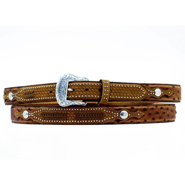 Style, form and function all come into play in this Nocona men’s belt. Its begins with cognac, ostrich printed leather. Add to that the Basketweave leather overlay. Silver conchos accentuate the overlay detail. All those features are finished with an ornate, removable silver buckle. This belt will add style to your western look and has the unique details you need to stand out in a crowd. Wear it with pride knowing that its made with the finest materials and the highest quality.