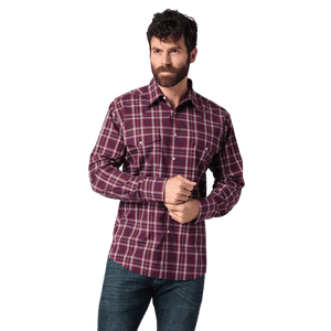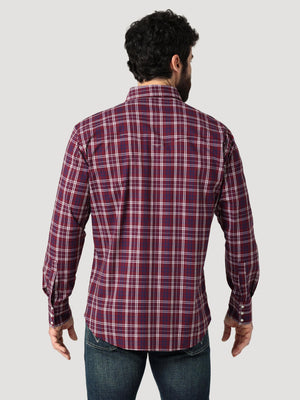Wrangler Men's Wrinkle Resist Syrah Long Sleeve Western Plaid Shirt 112318652