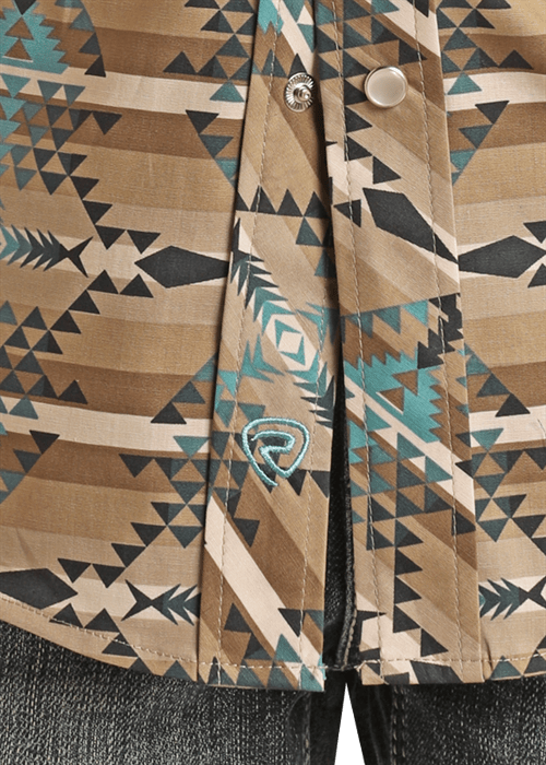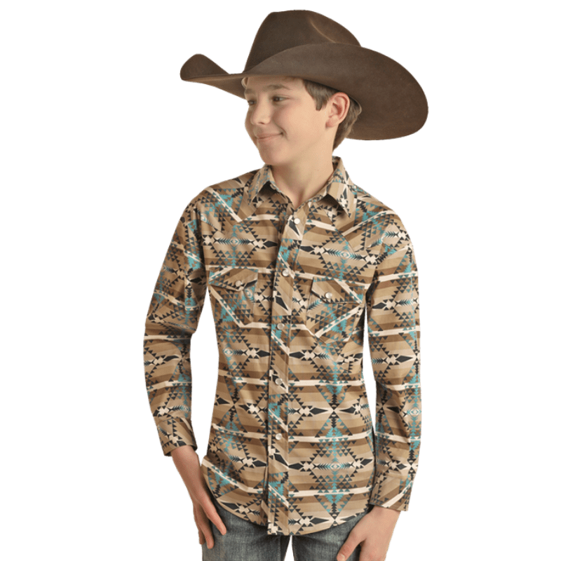Rock & Roll Denim Boys Turquoise Aztec Stripe Long Sleeve Western Snap Shirt BBN2S02534