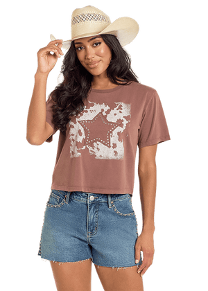 Rock & Roll Women's Brown Cowhide Star Graphic Tee BW21T06313
