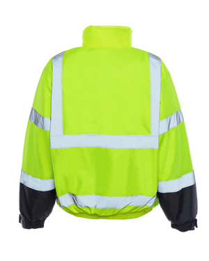 The Ultimate Reflective Hi-Vis Bomber Jacket: Hi-visibility workwear bomber jacket designed to get you noticed on the job site, hunting, or on your motorcycle. Reflective taping, combined with the Hi-visibility lime color, provides the ultimate safety wear.