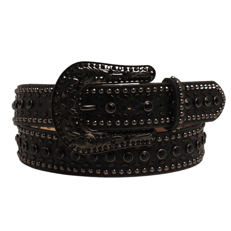 Nocona Women's Rhinestone Floral Black Tooled Leather Belt N3410201