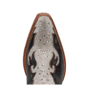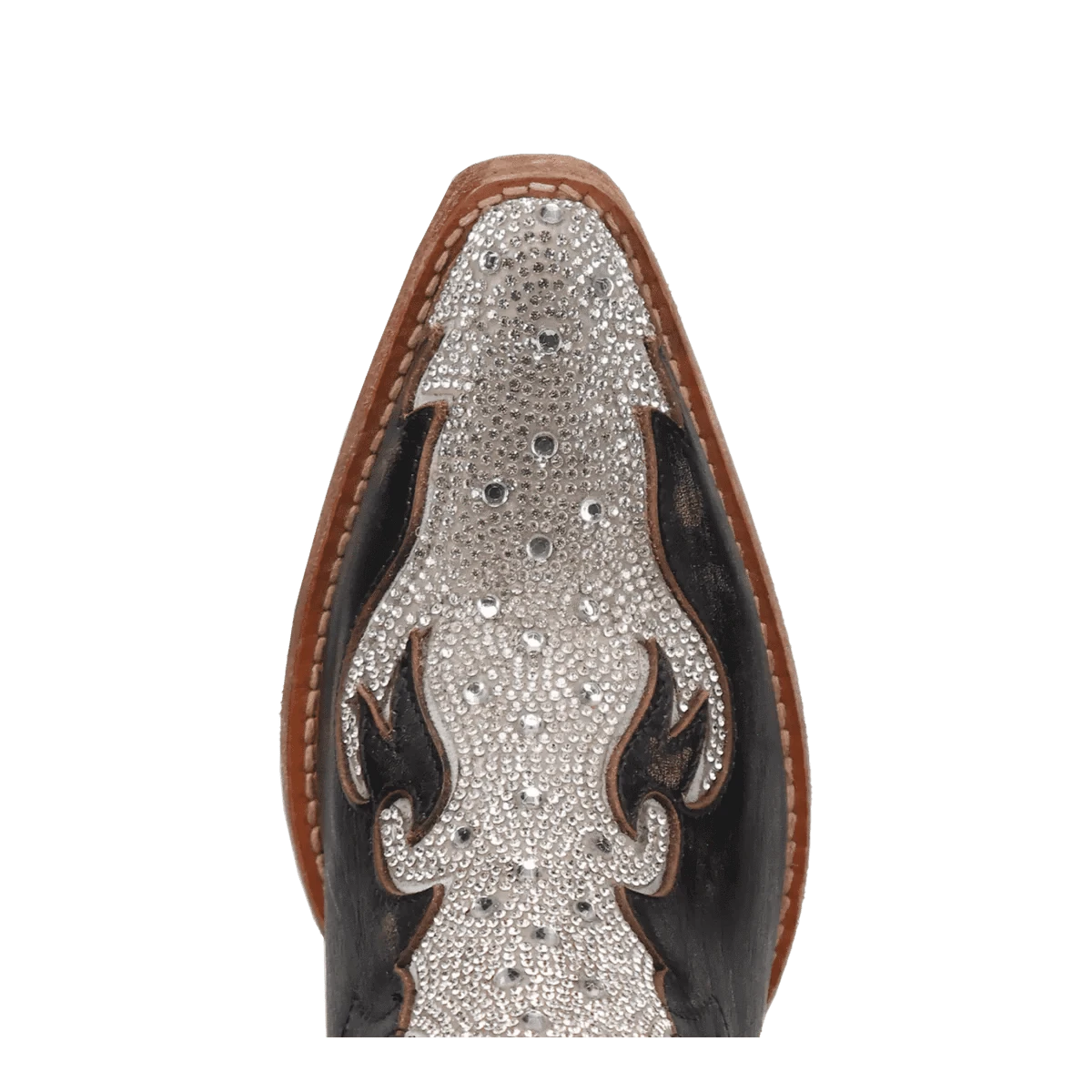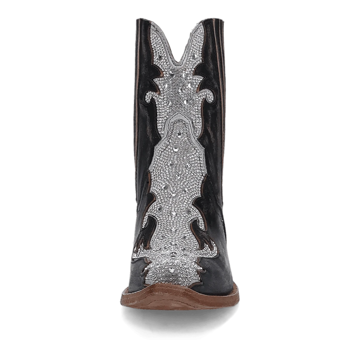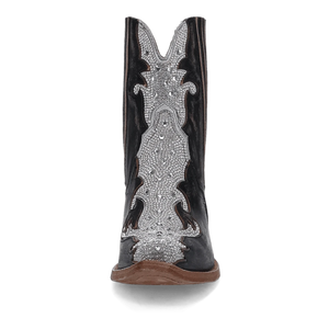 Stand out from the crowd in the Dan Post Crystal boot in black. This eye-catching, 6-inch boot features dazzling rhinestones, snip toe, and medium cowboy heel. Sparkle all night long wearing the Crystal.