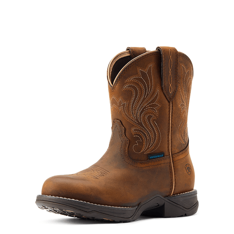 Ariat Women's Anthem Glazed Brown Round Toe Shortie Waterproof Western Boots 10044411
