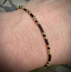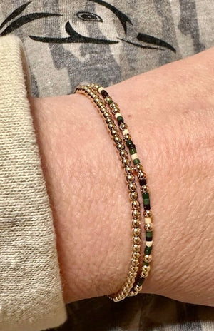 14K Gold Filled and Camo Color Seed Bead Stretch Bracelets