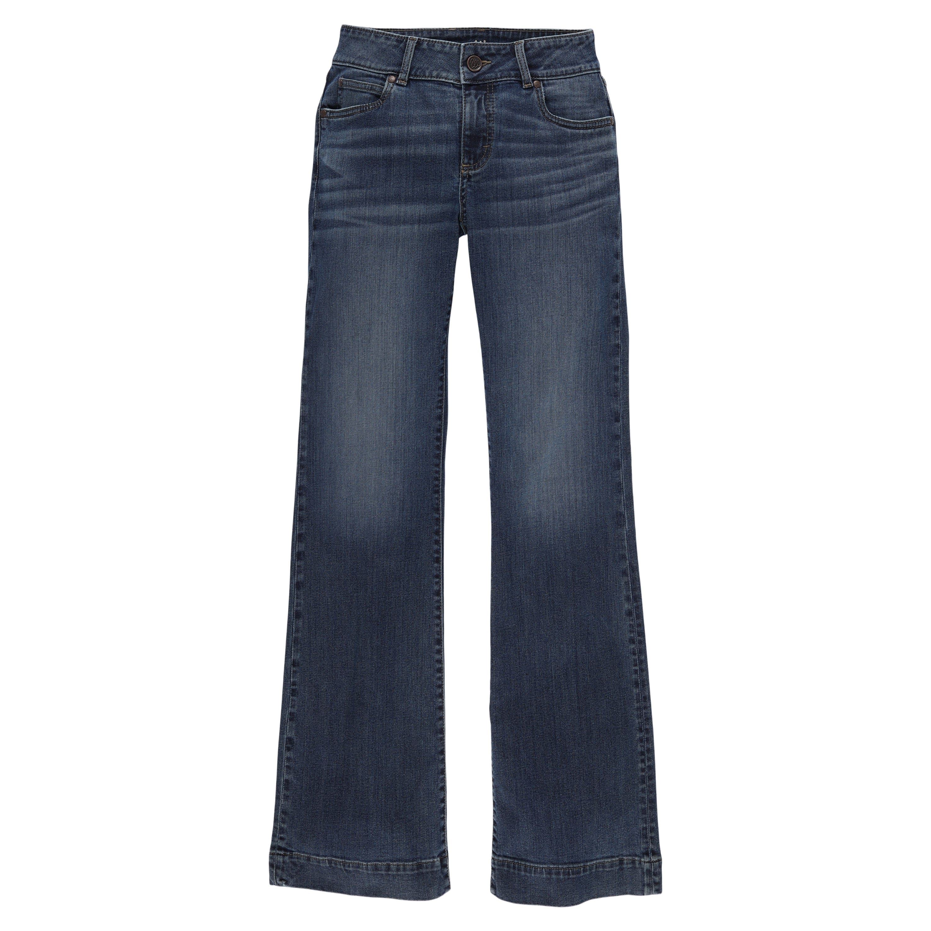 Like all Wrangler Retro® jeans, our Mae wide leg is marked by its Western authenticity, making it a go-to style for cowgirls everywhere. With its contour waist and mid rise, these women's trouser jeans are made to fit comfortably while they flatter. Want the look of a flare with added comfort? Our women's wide leg jeans make it happen. With more room at the knee and a gradual opening down the leg, the Mae wide leg gives you the room you need to stay active and in style. Wrangler® jeans for women are designed with a Western state of mind, so you can be confident that they'll keep up with you no matter what the day brings.