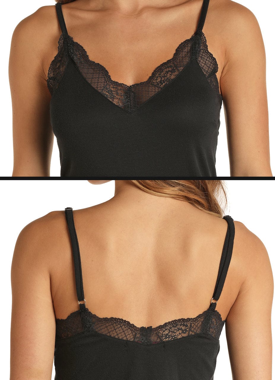 PANHANDLE Shirts Rock & Roll Cowgirl Women's Black Lace Trimmed Camisole 49-8442