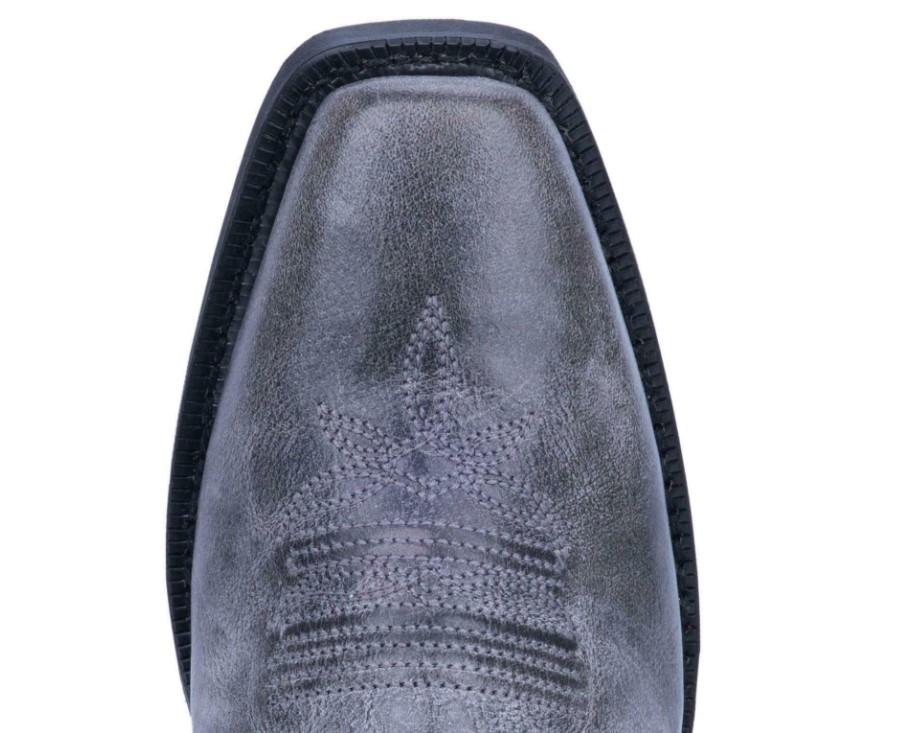 The Fern is made with a sanded grey leather upper. It features delicate fern stitching along the shaft and is accented with braided leather. Other great features include a cowboy square toe, removable orthotic insole, and Laredo Flex outsole.