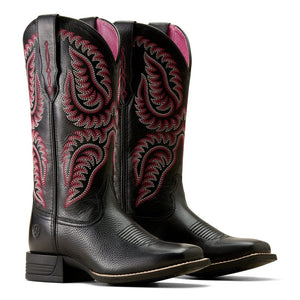 Ariat Women's Cattle Caite Black Deertan Stretchfit Square Toe Western Boots 10050920