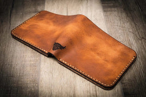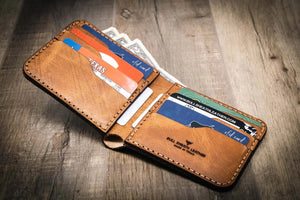 We infusequality from start to finish, ensuring that your personalized leather wallet is designed to last a lifetime. We use the best Veg-Tanned Leather from the best Made in USA leather tannery. We produce heirloom quality leather wallets by utilizing handmade leather working skills and tools from our studio in Texas. Your genuine leather wallet will patina over time, evolving your wallet while still displaying the highest quality.