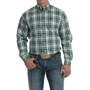Cinch Men's Turquoise/White Plaid Long Sleeve Button Down Western Shirt MTW1105705
