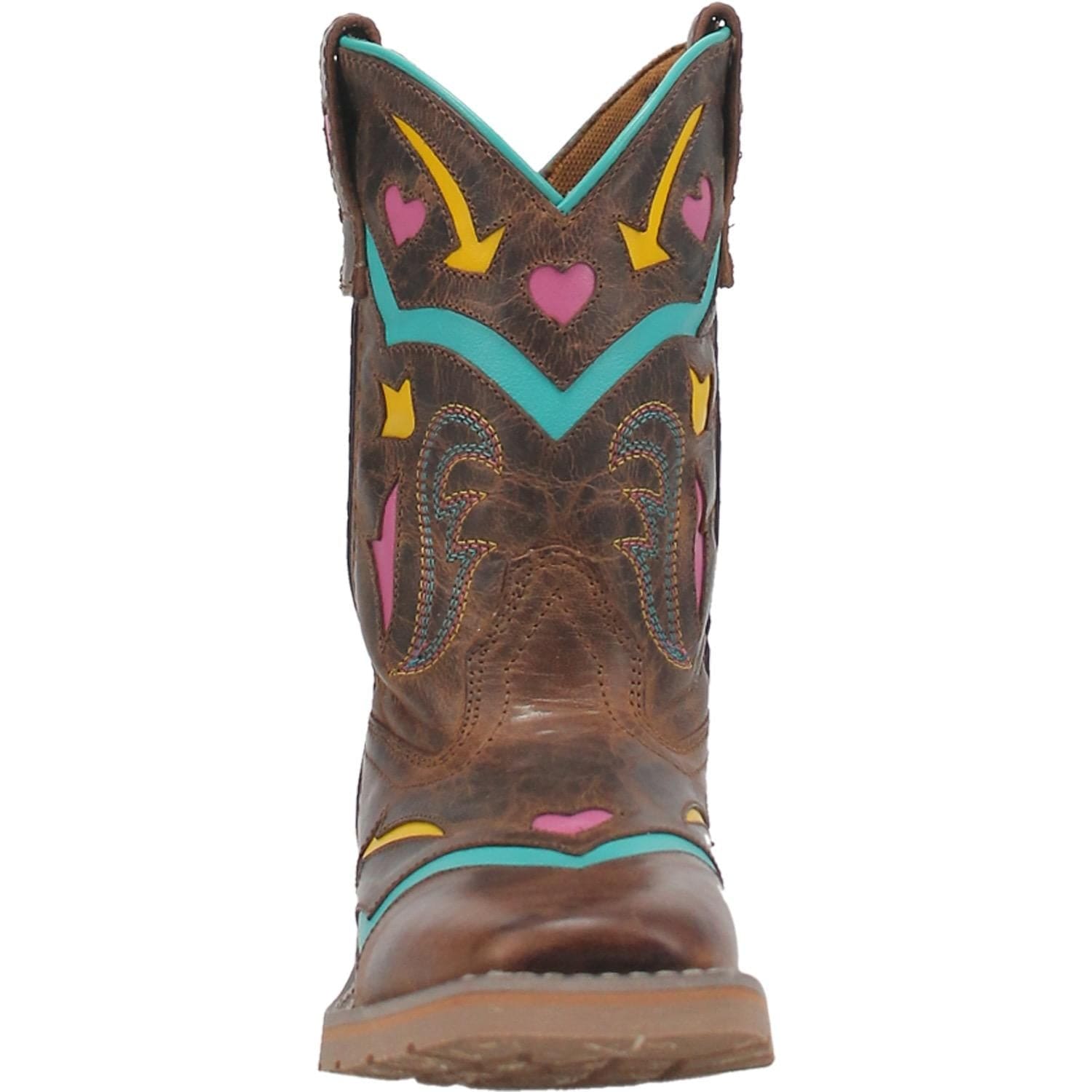 Pops of color create a dynamic and fun design on the Dan Post Seneca boot. Made of genuine leather with broad square toe and stockman heel.
