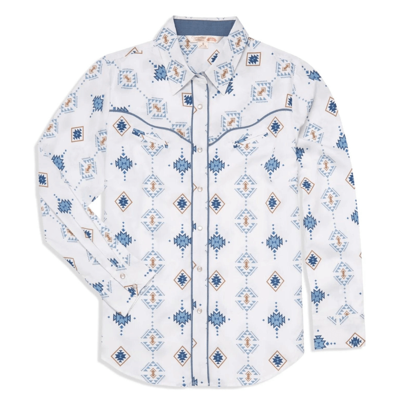 Ely Cattleman Women's White Aztec Print Long Sleeve Western Snap Shirt 324979-WH