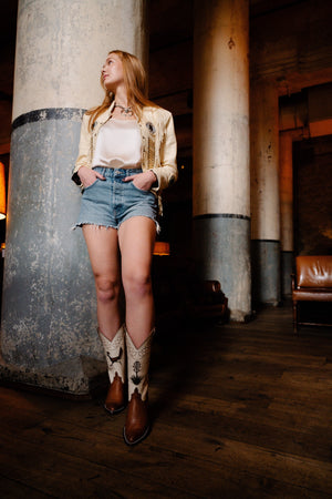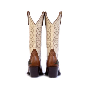 This boot tells a story with different elements on either boot - like an old vintage postcard in West Texas or Arizona. An original concept we haven’t seen happen in the boot world.