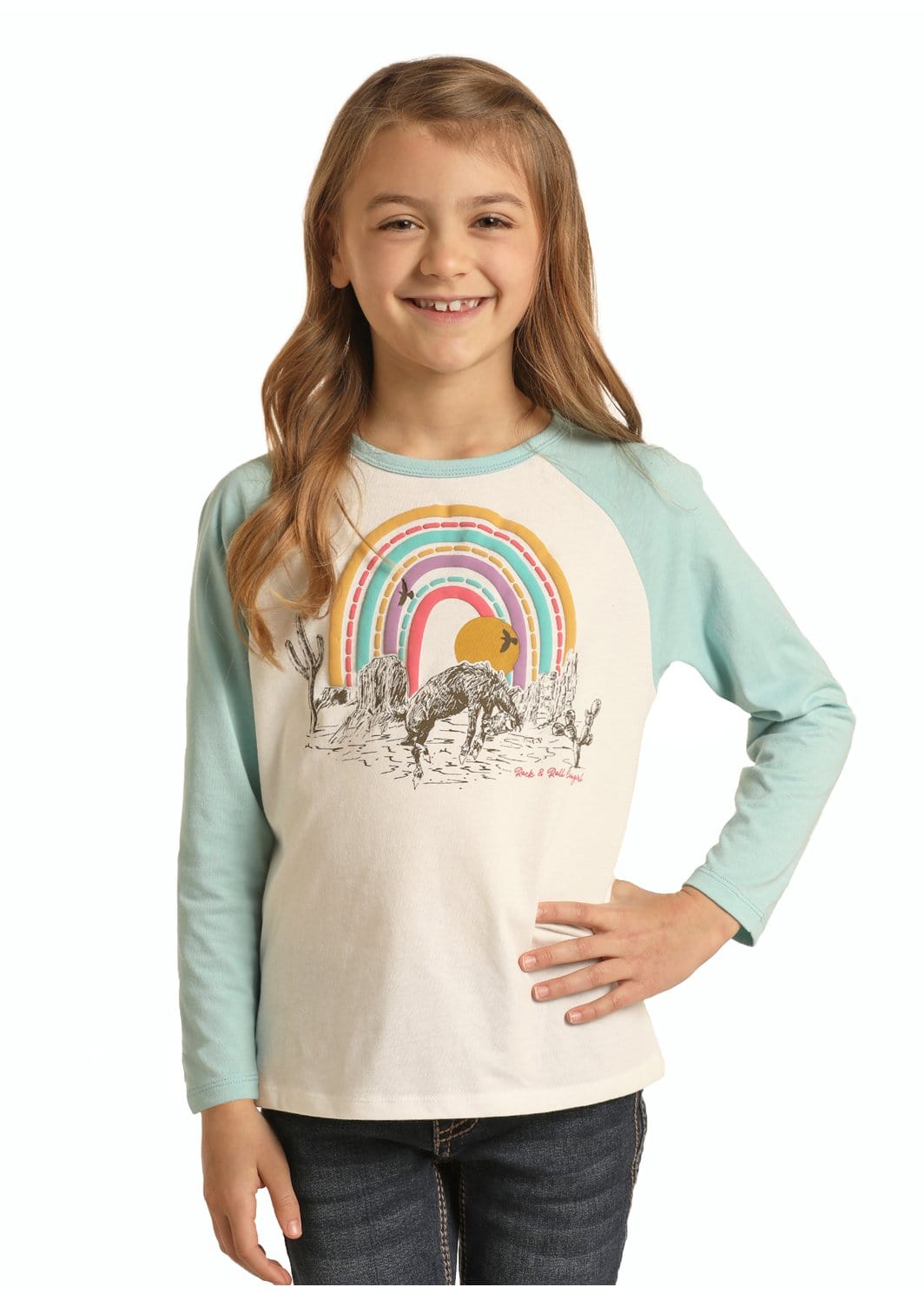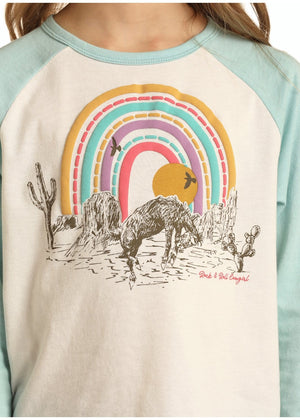 Rock & Roll Cowgirl Girl's Western Vibes Graphic Baseball Tee G4T1553