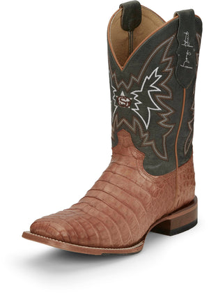 Justin Men's George Strait Haggard Tan Caiman Square Toe Exotic Western Boots GR5706