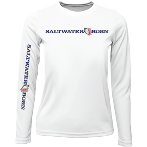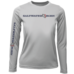 Key West, FL Saltwater Born Linear Logo Girl's Long Sleeve UPF 50+ Dry-Fit Shirt