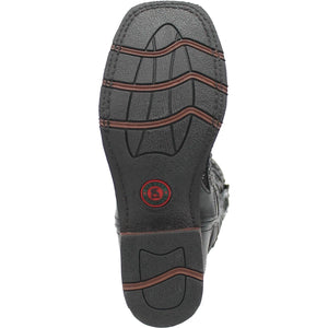 For a boot that goes beyond expectations, look no further than the all-leather Eternity boot in black from Laredo Cowboy Approved. A dazzling underlay design makes this 11-inch boot a stand-out in any situation. It comes with a broad square toe; stockman heel and removable orthotic insert for long-lasting comfort.