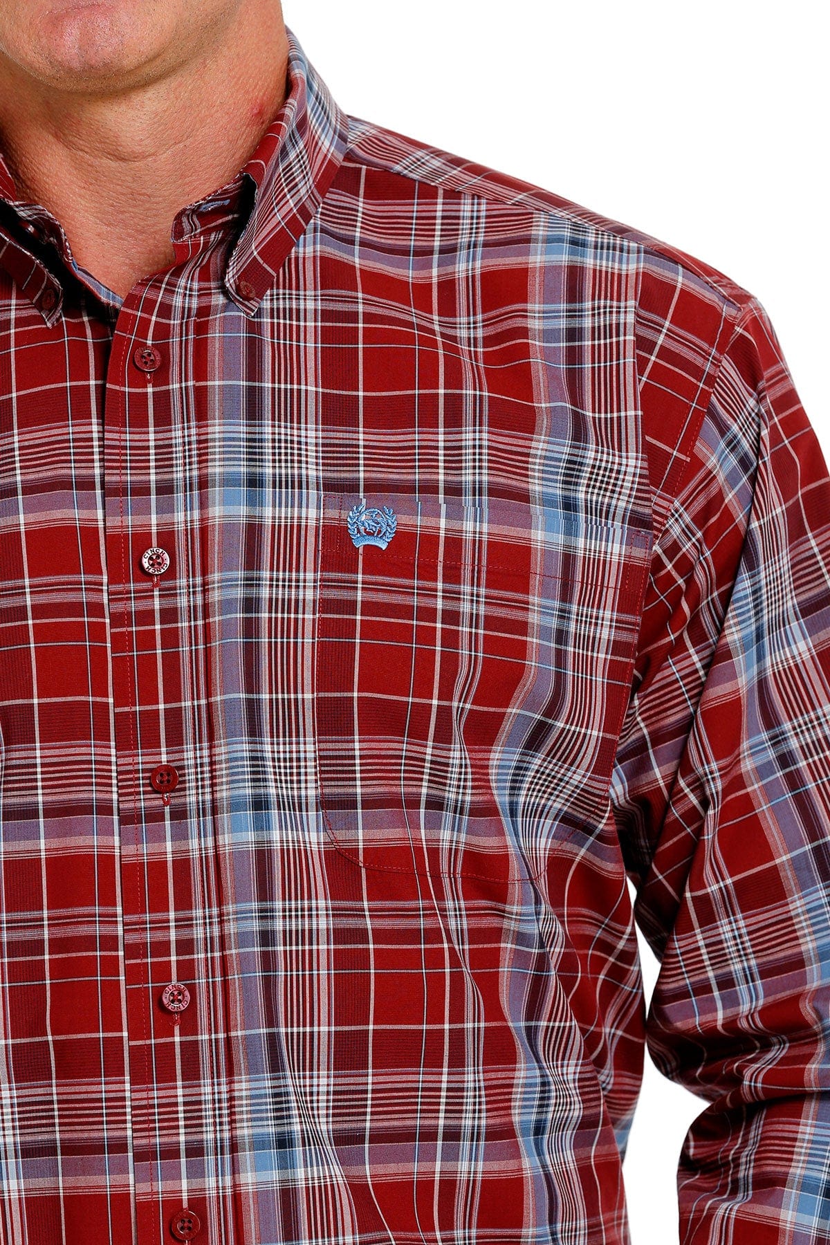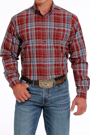 Cinch Men's Red/Blue Plaid Button Up Long Sleeve Western Shirt MTW1105620