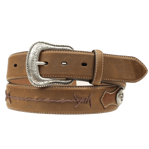 Nocona Men's Medium Brown Barbed Lace Long Horn Conchos Leather Belt N2474644