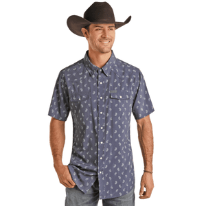 Panhandle Men's Slim Fit Paisley Blue Short Sleeve Western Snap Shirt TMN3S02474