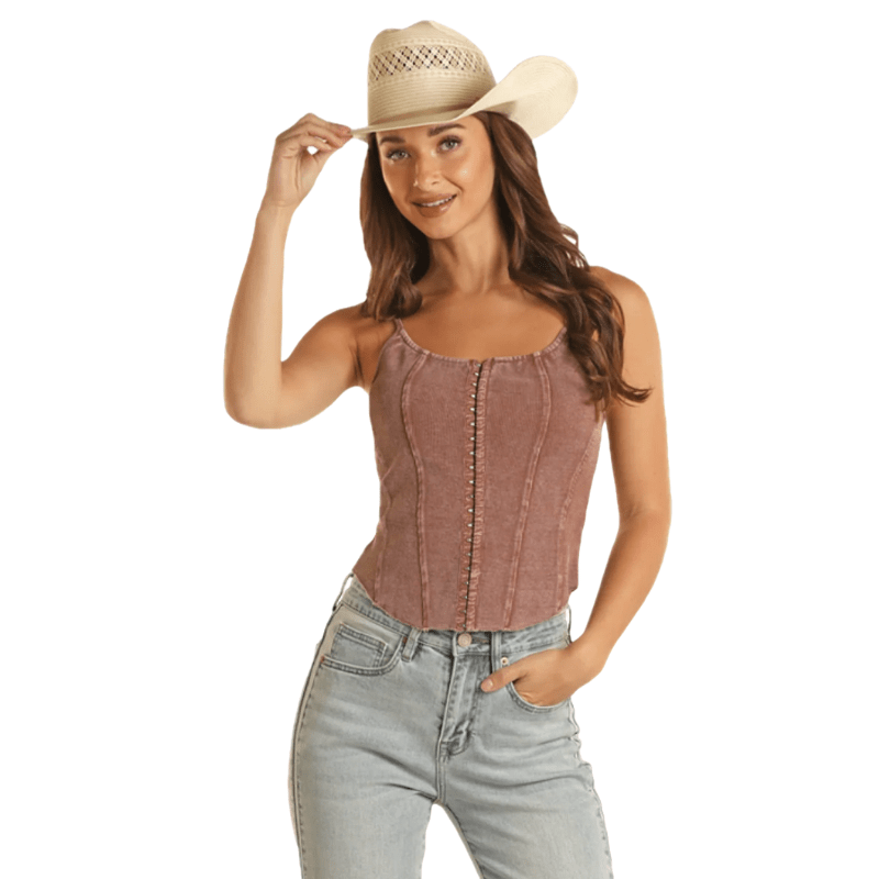 Panhandle Women's Brown Mineral Washed Rib Tank Top BW20T03249-24