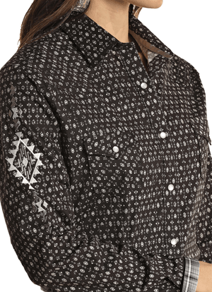 Panhandle Women's Rough Stock Geo Print Long Sleeve Western Snap Shirt RWN2S02220