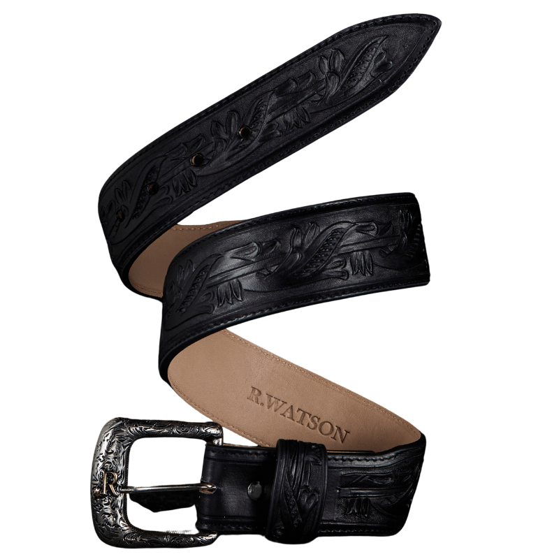 R. Watson Men's Black Hand Tooled Belt RWB2373