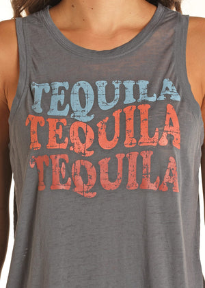 Rock & Roll Cowgirl Blue Grey Tequila Graphic Tank RRWT20R16G