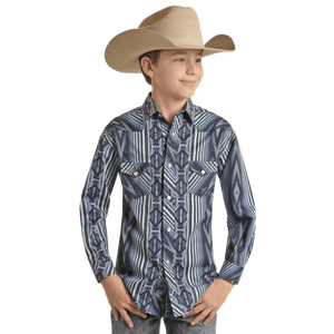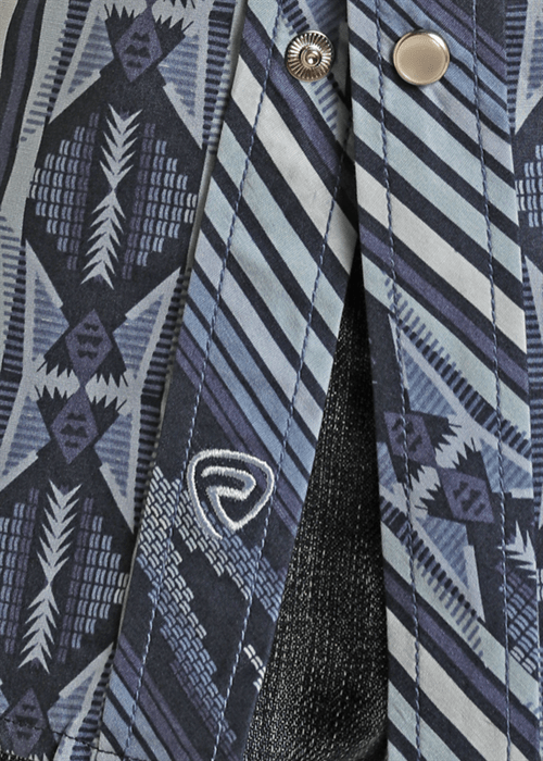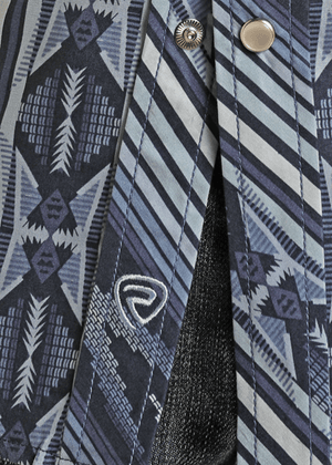 Rock & Roll Denim Blue Aztec Print Long Sleeve Western Snap Shirt BBN2S02517