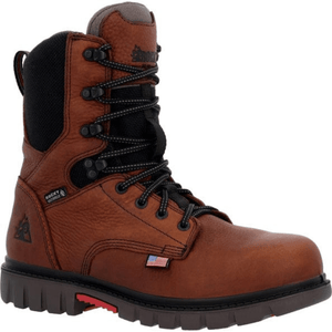 Made in USA with USA and globally sourced components. Ready to take on the day, this rugged eight-inch work boot is prepared for anything. Tackle any job with waterproof full grain leather and a direct attached oil- & slip-resisting rubber outsole with a PU midsole. Wet environments are no match for this boot with all around waterproofing by Rocky, guaranteed to keep your feet dry when you need it most. Our Rocky® Air-Port™ Footbed is a high-performance, cushioning and comfortable footbed that will keep you on your feet until the job is done. This boot meets ASTM 2413 protective toe and electrical hazard standards. Take on the day with comfort and protection with the Rocky WorkSmart Collection.