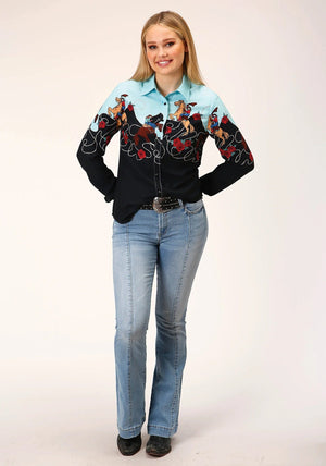 Roper Shirts Roper Women's Cowgirl Border Printed Long Sleeve Western Snap Shirt 03-050-0590-6114 BL