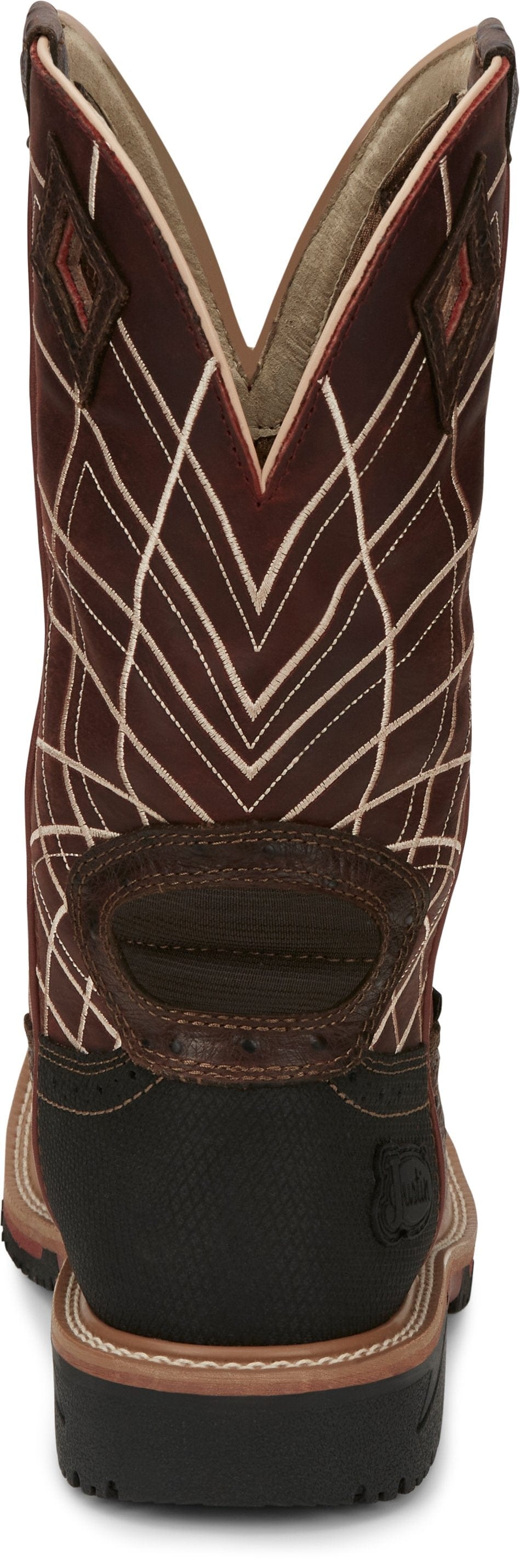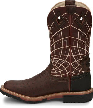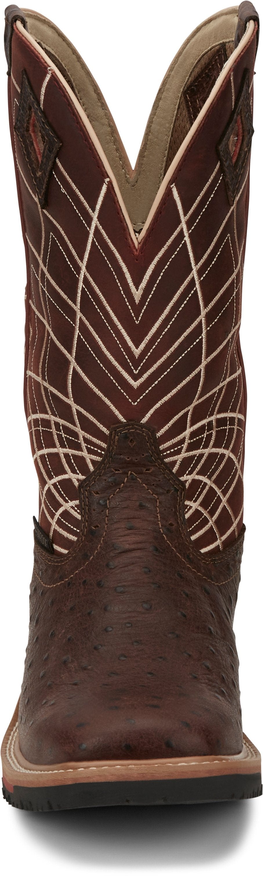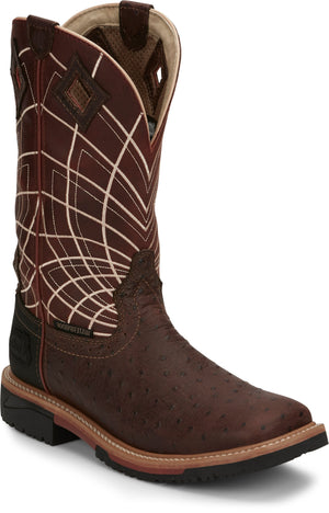 Justin Men's Derrickman Waterproof Burgundy Ostrich Print Square Toe Work Boot - SE4834