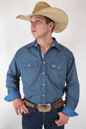 Signature Series - Bandero -Slate Gray and Blue Pearl Snap, Print, Classic Fit Shirt
