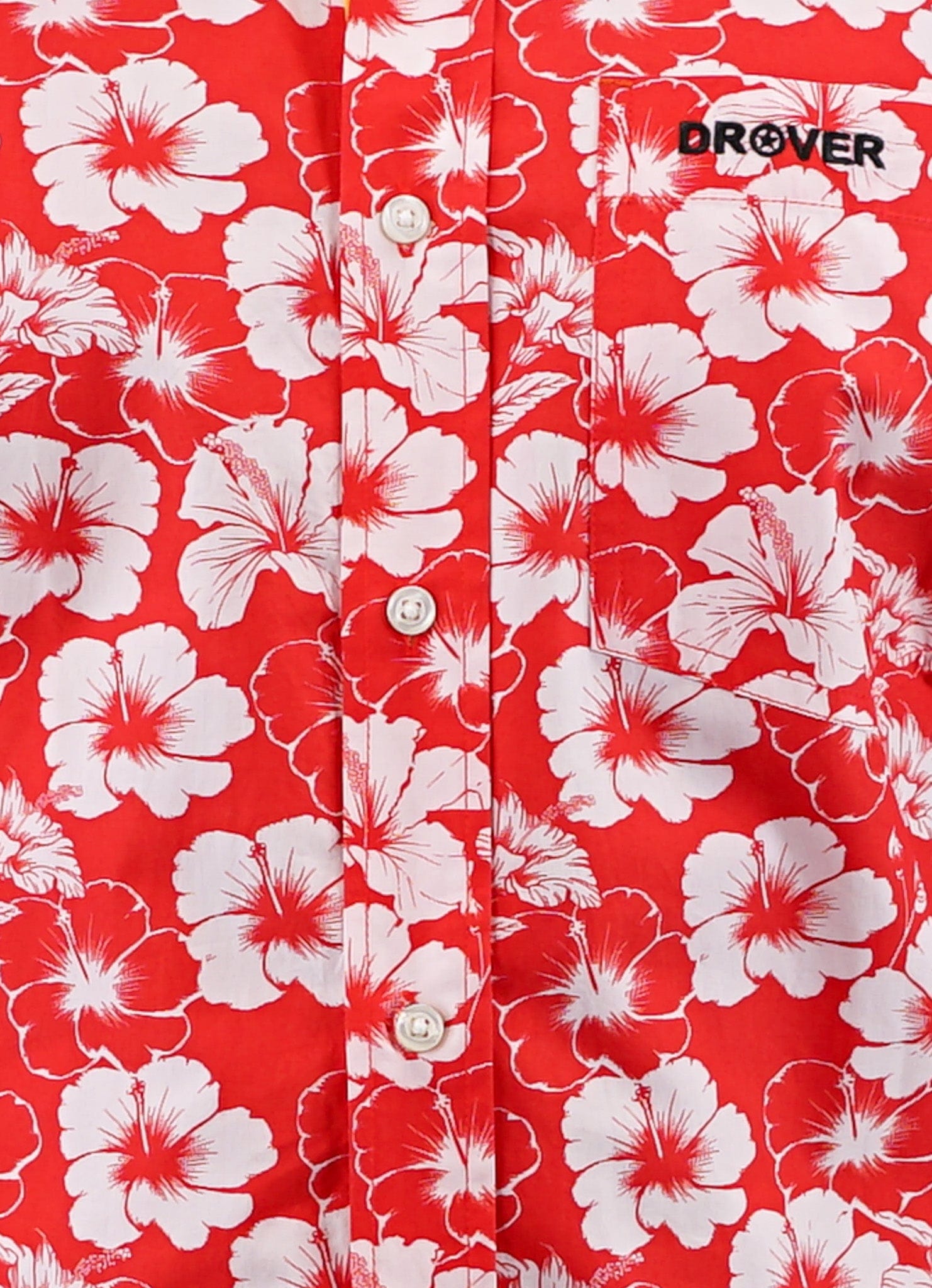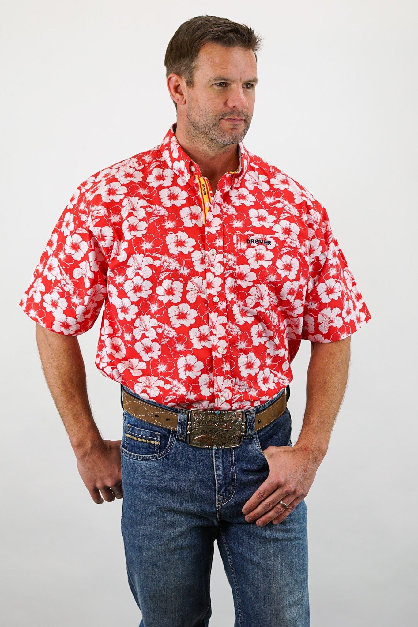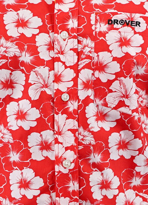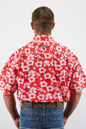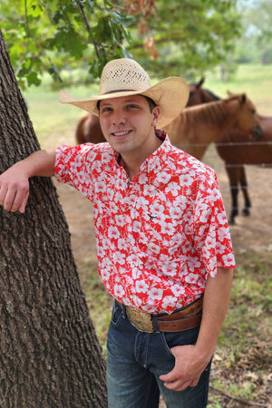 Signature Series - Concho - Red and White Hibiscus Flower Print, Classic Fit Short Sleeve Shirt