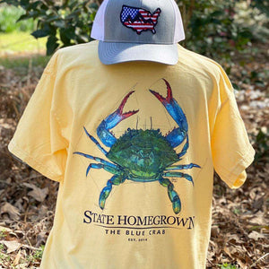 The Blue Crab Pocket Tee - Comfort Color empowers the beauty of the crustacean. Being a native species to the western Atlantic Ocean and the Gulf of Mexico. But, this tee will show off the strength in its arms and the vibrant colors giving it its name. Next time you are at the beach, you can stick to the theme with this majestic artwork. Next time you are at the beach with family or friends, show your love for the blue crab and get your dip nets ready for that perfect dinner with the family. A must have for your coastal collection of tee's.