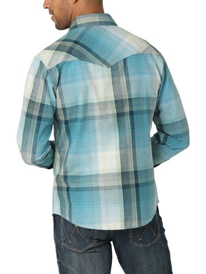 Wrangler Men's Blue Light Plaid Slim Fit Long Sleeve Snap Shirt 112324851