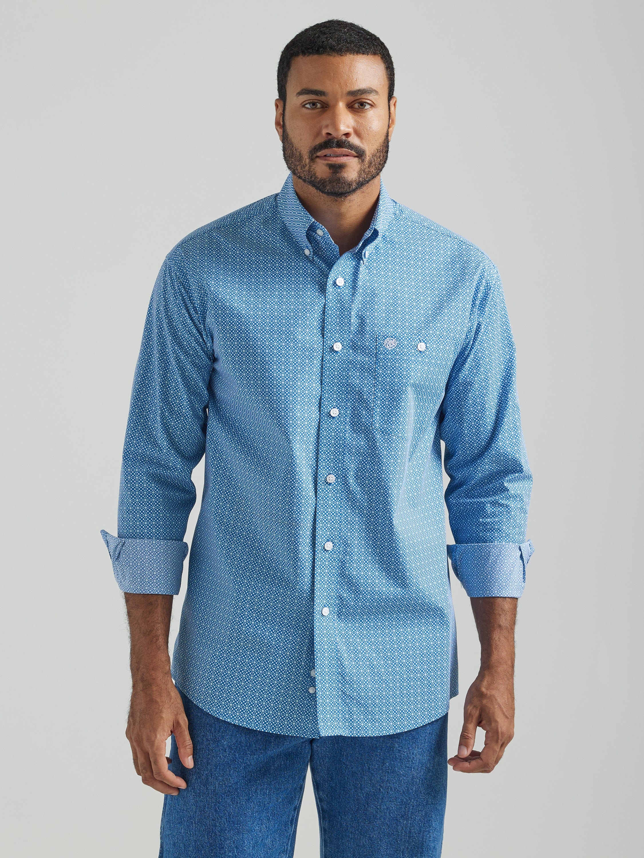 Wrangler Men's Blue Long Sleeve Printed Western Shirt 112324793