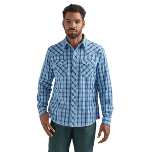 Serving that classic Wrangler® style at its best, this men's long-sleeve fashion western snap plaid shirt comes with all the distinctive details you know and love. It features rancher's crease styling in the front, a pointed front yoke, a sawtooth-inspired back yoke, two snap cuffs, double snap flap pockets at the chest, and a curved hem for versatility. It's made of cotton to keep you comfortable all year long and it features a modern fit. You can leave it untucked or tuck it into your favorite Wrangler jeans, with a t-shirt underneath if you feel like layering.