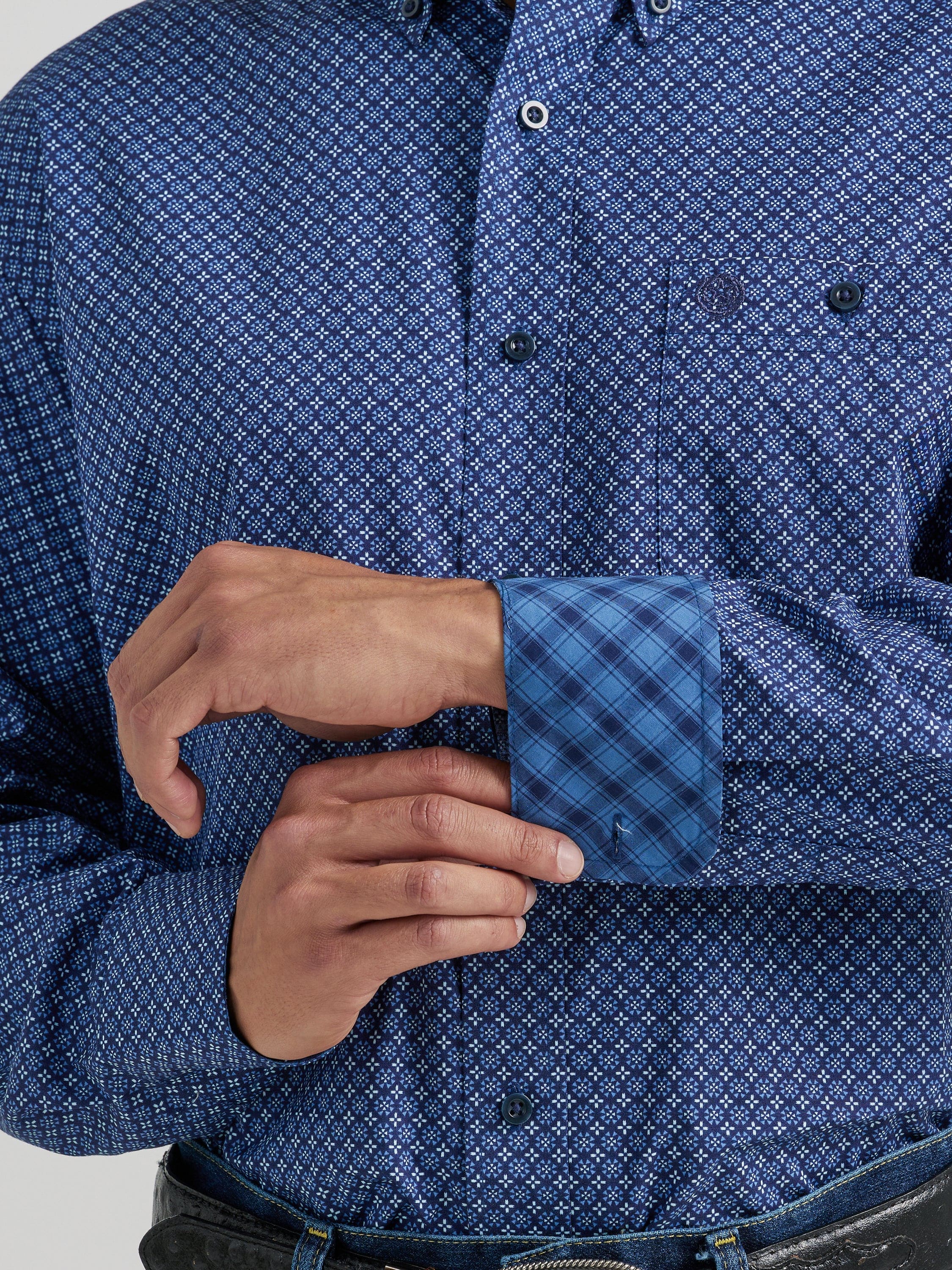 Wrangler Men's George Strait Geo Print Midnight Splash Relaxed Fit Long Sleeve Shirt 112338099