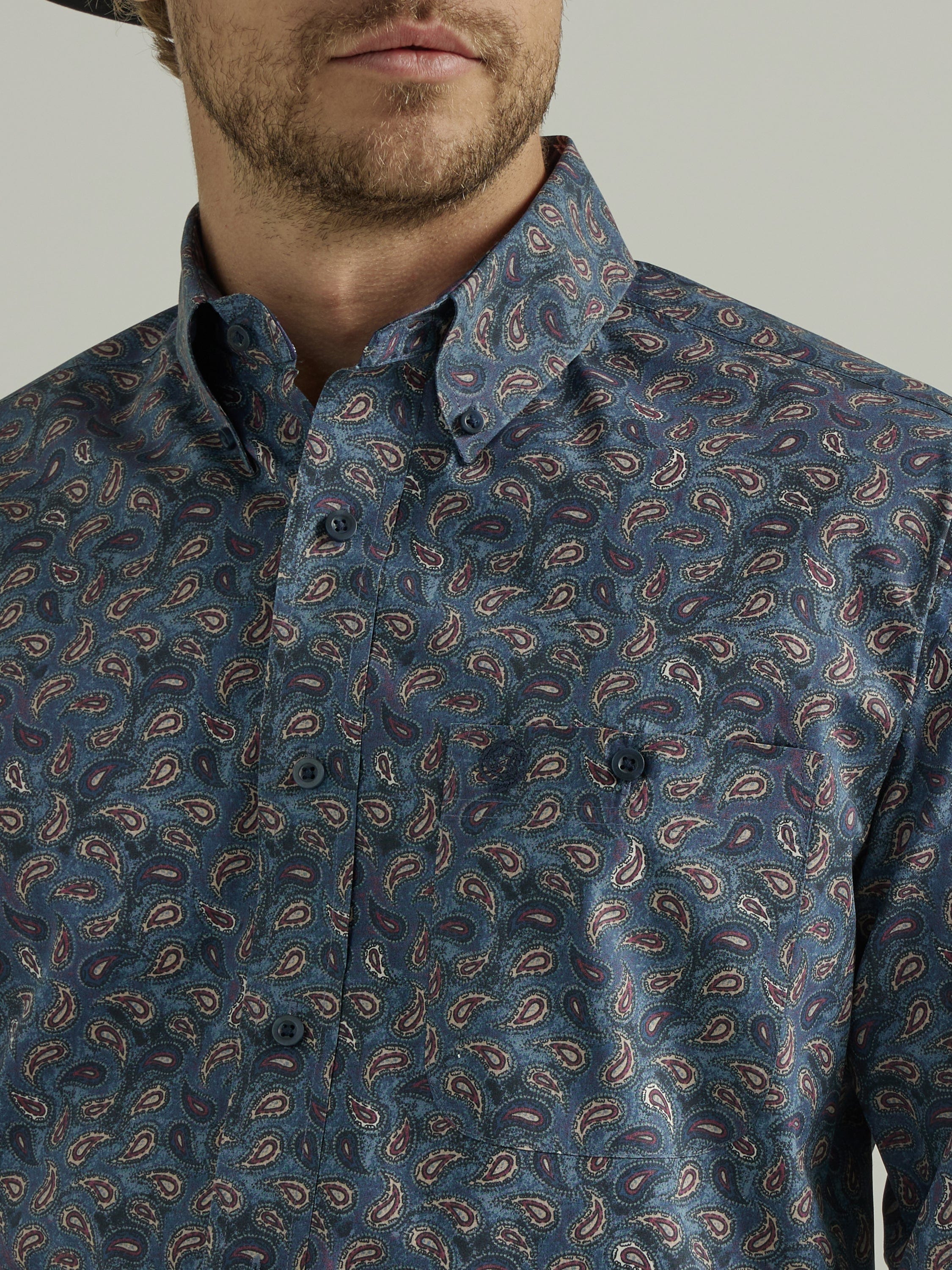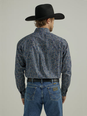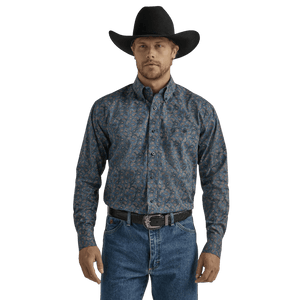Wrangler Men's George Strait Navy Paisley Long Sleeve Button Down Western Shirt 112331808