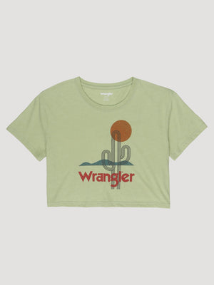 Warm days call for shorter styles. Luckily, our women's Wrangler Retro® mod cactus boyfriend crop tee is cut to the perfect length for soaking up that sunshine. It's crafted from a buttery soft cotton blend you can wear all year long. Across the chest, it features a modern print of a desert scene and the Wrangler® logo. Pair this classic crewneck with your favorite shorts or jeans.